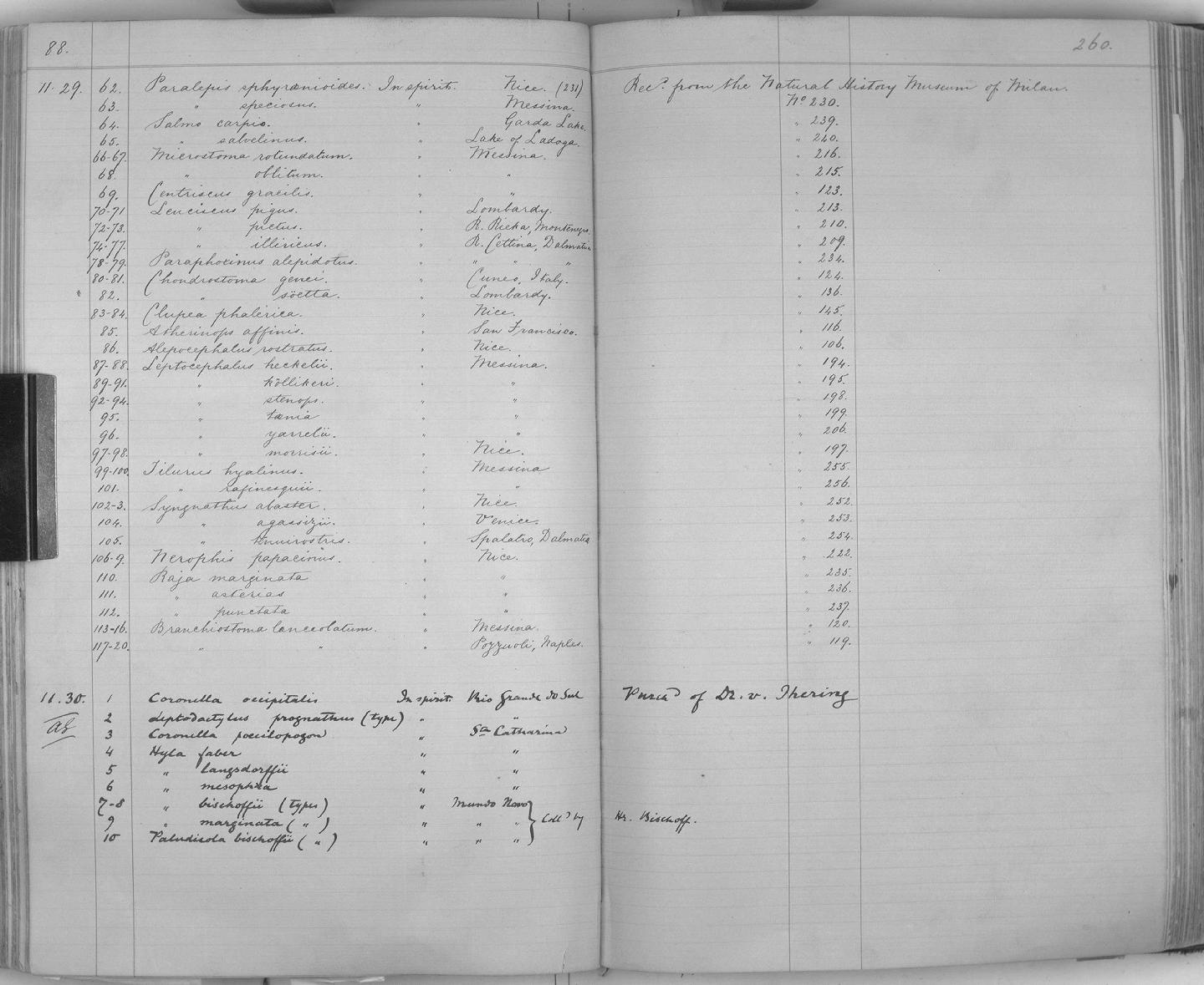 Zoology Accessions Register: Reptiles & Fishes: 1878 - 1892: page 260 |