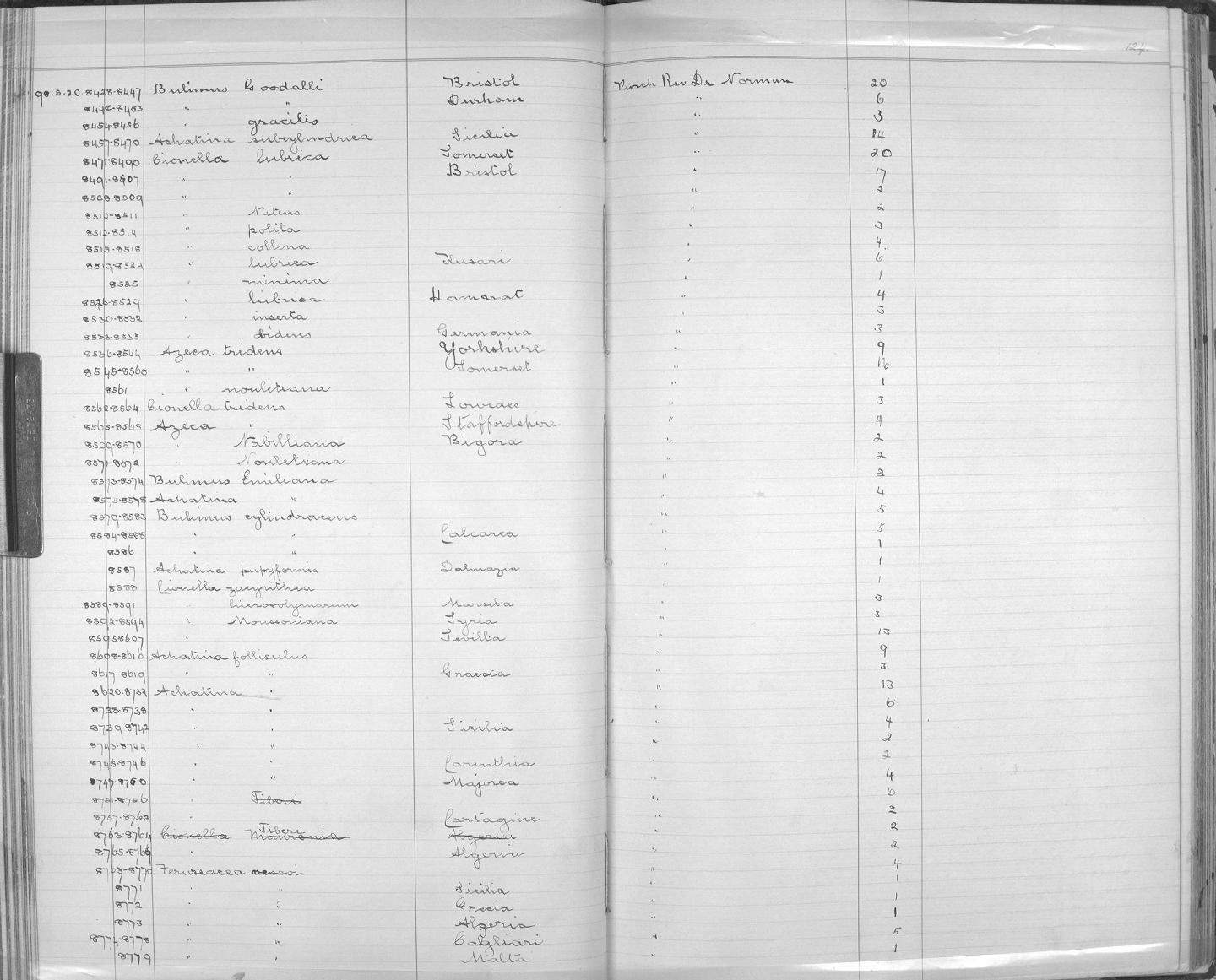 | Title | Zoology Accessions Register: Mollusca: 1894 - 1899: page 124 |