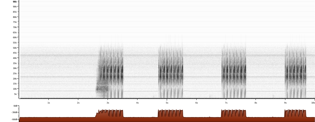 Spectrogram of the first ten seconds of the sound recording |