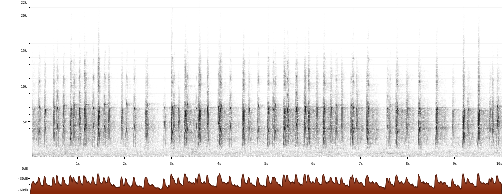 Spectrogram of the first ten seconds of the sound recording |