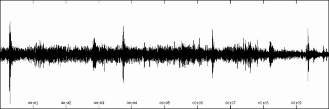 Oscillogram of the first ten seconds of the sound recording |