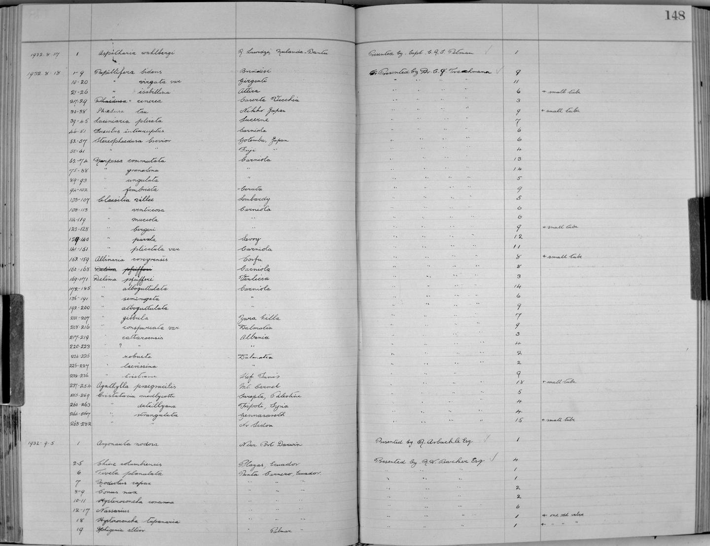 | Title | Zoology Accessions Register: Mollusca: 1925 - 1937: page 148 |