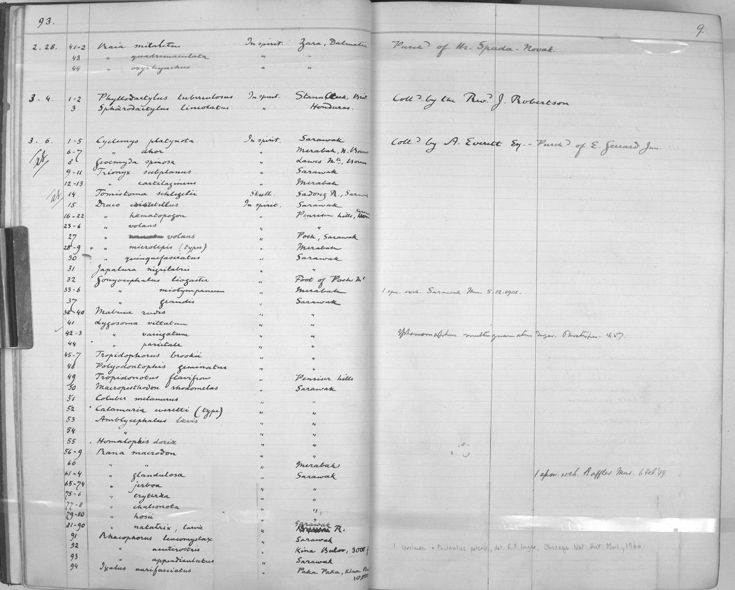 Zoology Accessions Register: Reptiles & Fishes: 1893 - 1903: page 9 |